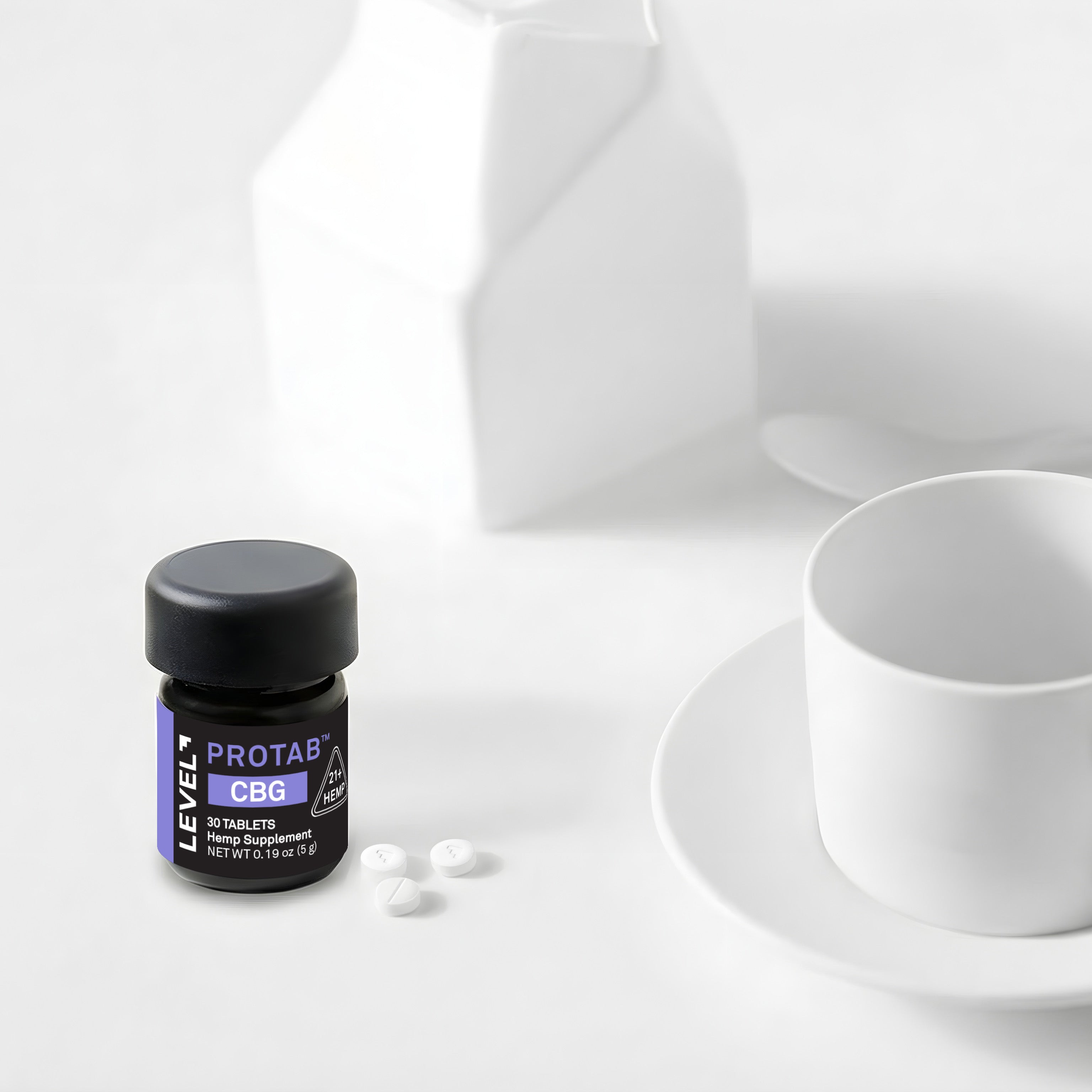 Smooth out the edges of a rough day with the extra-strength, calming effects of the LEVEL CBG Protab. Each tablet contains 25 mg of CBG, designed to provide long lasting relief for 3–6 hours. For a lighter dose, the tablets are scored, making it easy to split one in half.